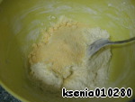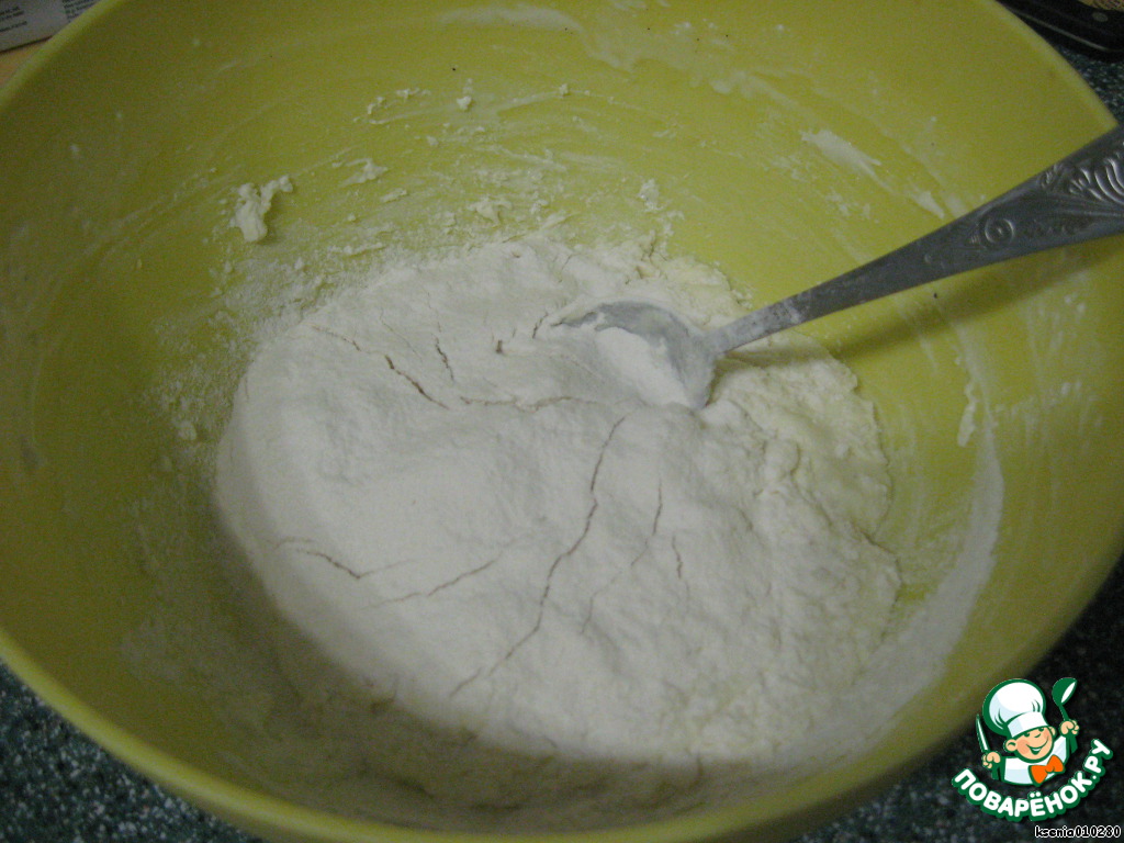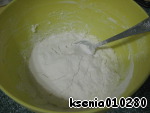 Теперь добавляем муку с разрыхлителем и хорошо перемешиваем.