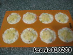 Тесто выкладываем в формочки, сверху посыпаем оставшимся сыром и кунжутом (но для меня это уже был перебор, а Вы пробуйте!).
