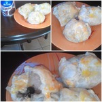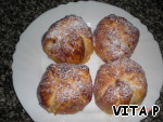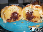 Смазать желтком и отправить в духовку 200 градусов, пока не зарумянится, минут на 30-40. Так как яблоки были некрупные, они хорошо пропеклись. |