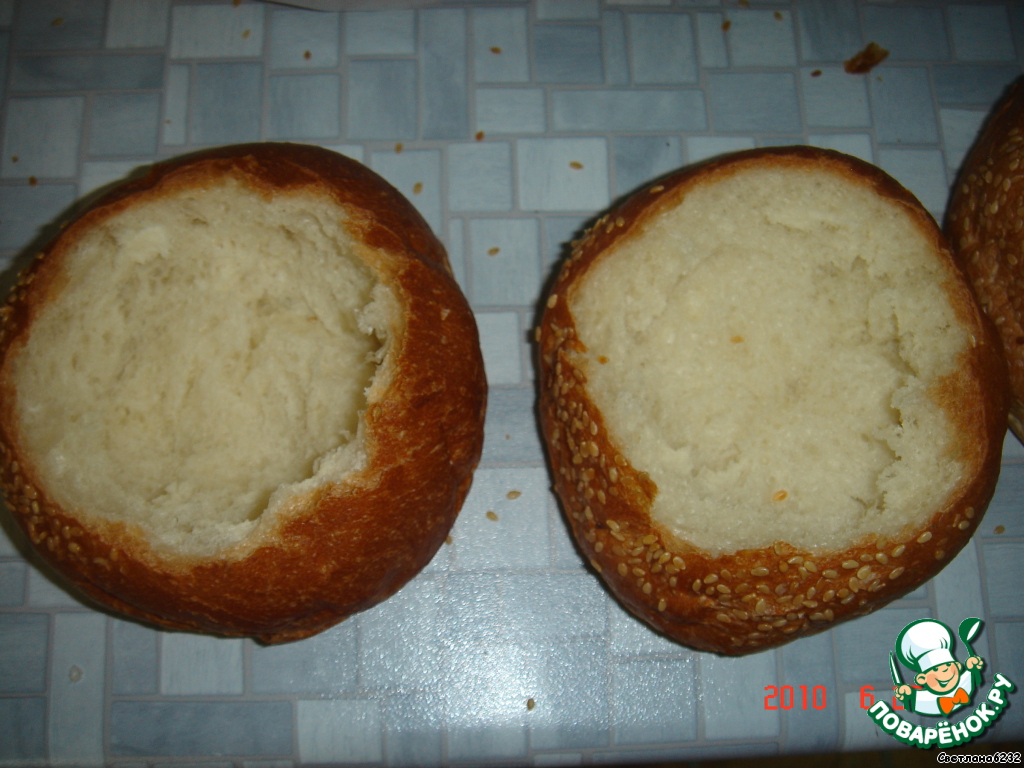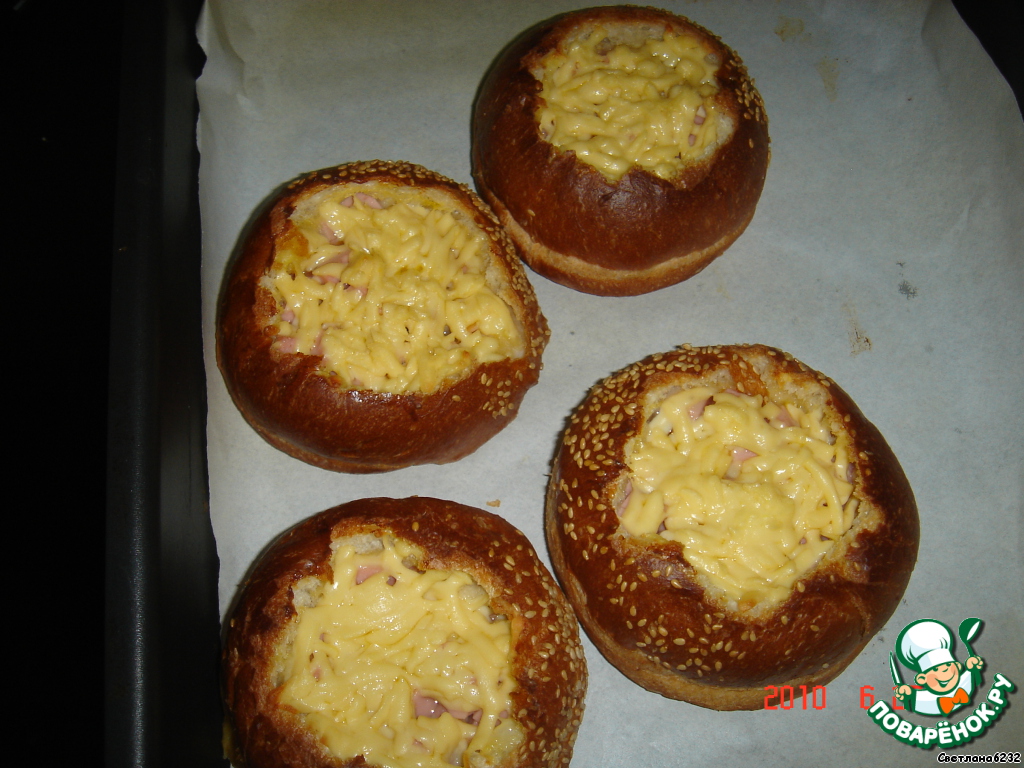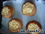 4. Смесью наполнить булочки и посыпать их сыром, натертым на терке.