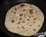 Нагреваем сковороду на среднем огне. И выкладываем лепешку на сухую сковороду. Обжариваем буквально по минуте с двух сторон.