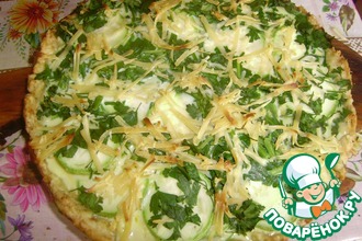 Сверху залейте яичной смесью и посыпьте оставшимся пармезаном.
