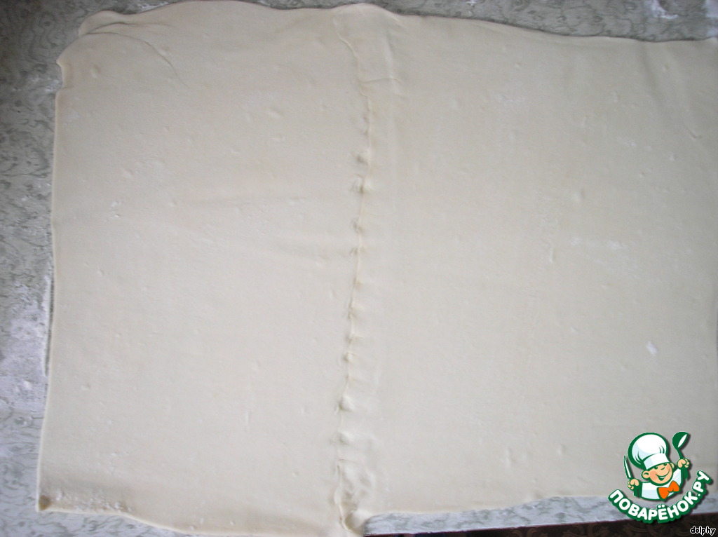 Раскатайте 2 пласта теста, скрепив их посередине.