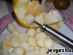 Специальной выемкой сделать шарики из той же дыни, киви.