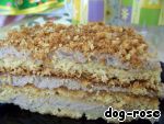 Дальше смешиваем ликер с водой (я делаю так, чтобы получилось примерно 100 мл жидкости или побольше). Вообще торт чем лучше пропитать, тем вкуснее будет. Поэтому пропитки не жалеем, пропитываем каждый корж, лучше – с двух сторон. Корж – крем, корж – крем и так далее, в зависимости от того, сколько коржиков получилось. Верхний корж обмазываем остатками крема, высыпаем крошки. Ставим на ночь в холодильник. Утром достаем и наслаждаемся. Приятного аппетита и отличного настроения!