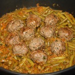 • затем добавить томатную пасту и фрикадельки. Посолить. Тушить под крышкой на медленном огне до готовности, около получаса.