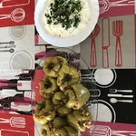 Вот наши 2 долмы - шпинатная и перцы.