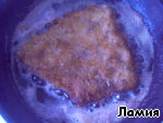 Обжариваем наши шницельки в смеси подсолнечного и сливочного масел. С двух сторон до полной готовности. Жарим на маленьком огне, иначе хлебная крошка может сгореть.