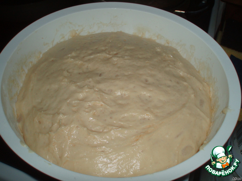 накрываем полотенцем и даём подняться (тесто увеличивается в 2-3 раза) -