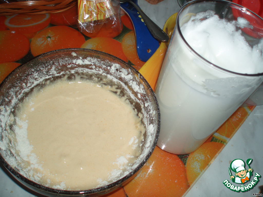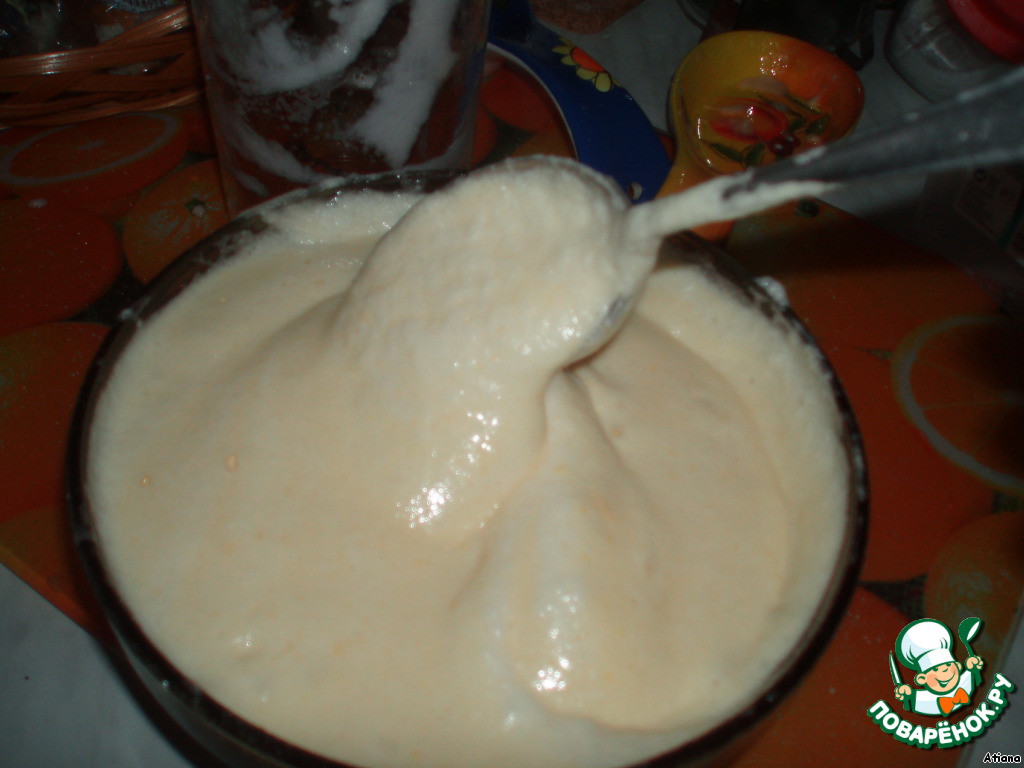 в тёплом молоке растворить 1 ст. л. сахара и дрожжи, добавить примерно 1 стакан муки, перемешать, густота получается как густая сметана,