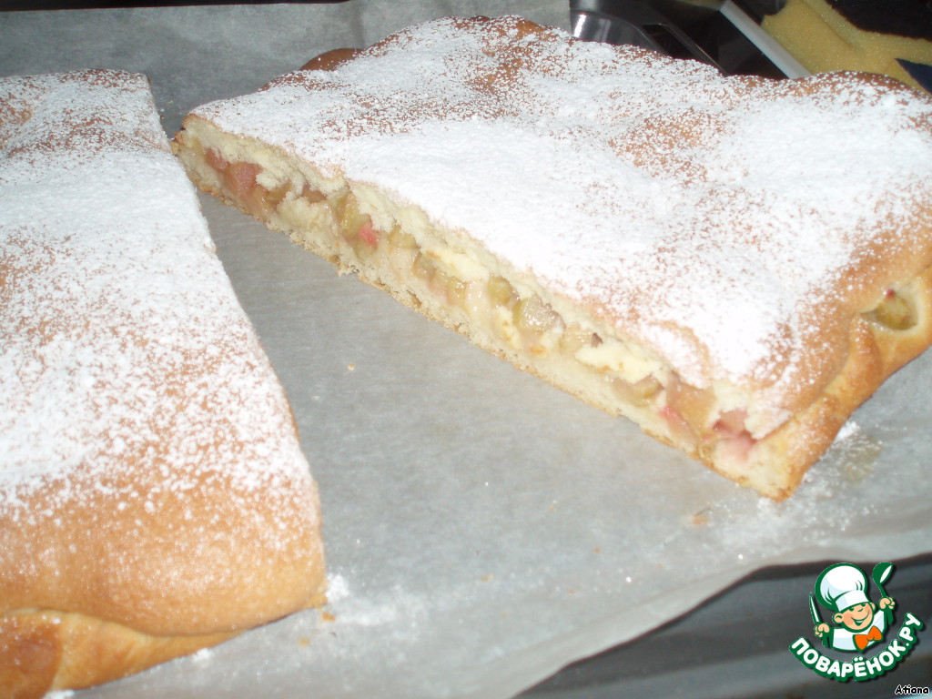 Пирог из дрожжевого теста с ревенем и бисквитом - это любимый пирог из далeкого детства :))