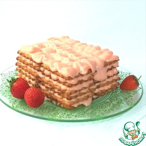 Варим заварной крем: 500 мл молока, 2 ложки кукурузного крахмала, 1 ложка муки, яйцо, сахар по вкусу и 2-3 ложки масла или маргарина, ванилин. А также влить сок клубники, предварительно клубнику засыпать сахаром и потом использовать этот сок. Тогда получается клубничный крем. А еще можно добавить ложку лимоного сока, тогда крем получится неприторный.