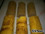 Каждый из рулетов режем на 3 части, аккуратно разворачиваем и избавляемся от бумаги.