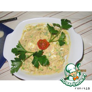 Смешать все ингредиенты в посуде для подачи и поставить на час в холодильник.