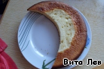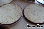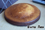 Когда остынет, срезаем выпуклую часть коржа и разрезаем вдоль на 2 части.