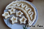 Из оставшейся части коржей вырезаем звезды (четное кол-во, чтобы собрать по двое).