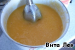 Персики пюрируем и вводим желатин (2 упаковки), разведенный в сиропе из-под персиков.