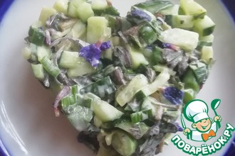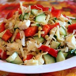 Предупреждаю сразу - этот салат достаточно пресный, на любителя. Как вариант предлагаю заправить маслом с чесноком и травами, но это если кушать его дома