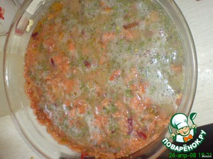 • Как только вода впитается (10 - 15мин.), все перемешайте и выложите в форму для запекания, залейте взбитыми яйцами с зеленью и - в духовку, печь при t 200 до золотистой корочки