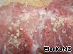 Куриную отбивную солим, перчим и натираем рубленым чесноком.