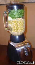 Перемешайте сваренный горох с пол стакана тхины (паста из семян кунжута) лимонный сок, соевый соус, соль и превратить в пюре любыми доступными для вас способами – перетереть, растолочь, измельчить в блендере.