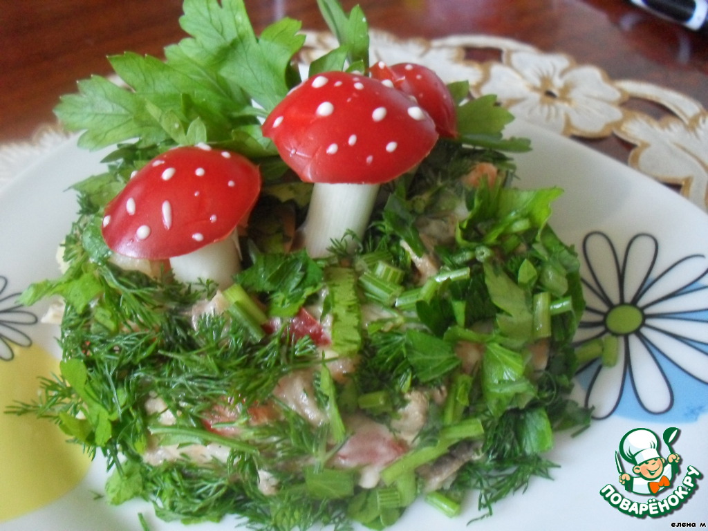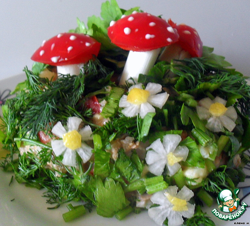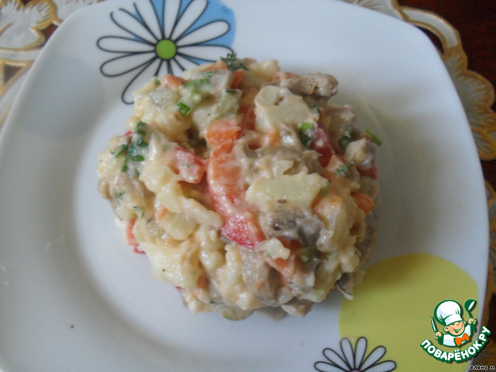 Вкусный салат, один из вариантов салата "Грибы по-польски".