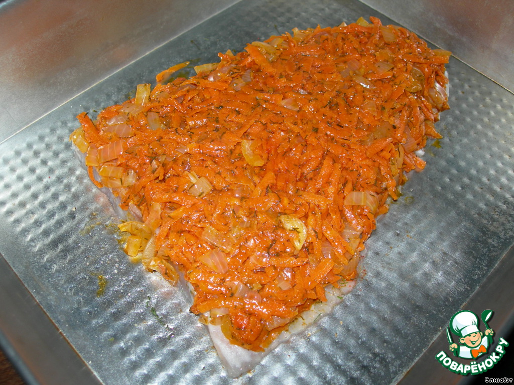 Запеченае филейная часть рыбы под "шубой" из моркови, лука и сырной "шапочки". Делается очень просто! Под силу начинающим кулинарам.