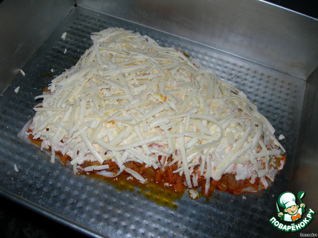 Выпекаем при 180-200 градусах в духовке минут 25-30 до золотистой корочки сыра.