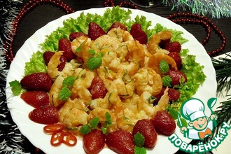 После этого вынимаем из форм, украшаем креветками.