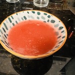 Отвар процедить, добавить клюквенный сок и всыпать тонкой струйкой манку, непрерывно помешивая.