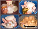 Куриные бедрышки отделить от ножек, положить в тазик или кастрюлю добавить специи, посолить, поперчить. Все перемешать.