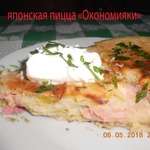 "Окономияки" переводится как "то, что ты хочешь". Если Вам посчастливится пробовать это блюдо в одном из ресторанов Японии, официант спросит у Вас какую начинку Вы предпочтете: копчености, грибы, запеченное мясо, сыр или морепродукты. Очень просто и быстро! Вкусно - невозможно остановиться. Все продукты под рукой. Такие рецепты просто обожаю! Уверена, попробовав однажды никто не останется равнодушным!!! Подойдет и деткам, и мужьям, и нам - девочкам. Я, пожалуй, завтра снова приготовлю. За рецепт благодарю мою любимую телеведущую Елену Чекалову.