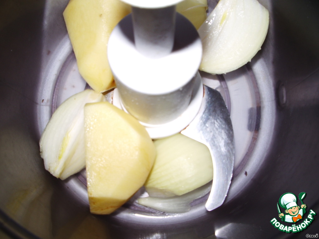 Все складываю в комбайн. Здесь мясо не перекручивается, а рубится.