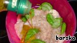 Шницели из индейки слегка отбить, посолить и поперчить, залить оливковым маслом и переложить базиликом. Оставить мариноваться на 20-30 мин.