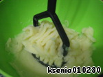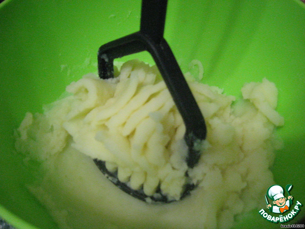 Отварить картофель в подсоленной воде до готовности и размять его со сливочным маслом.