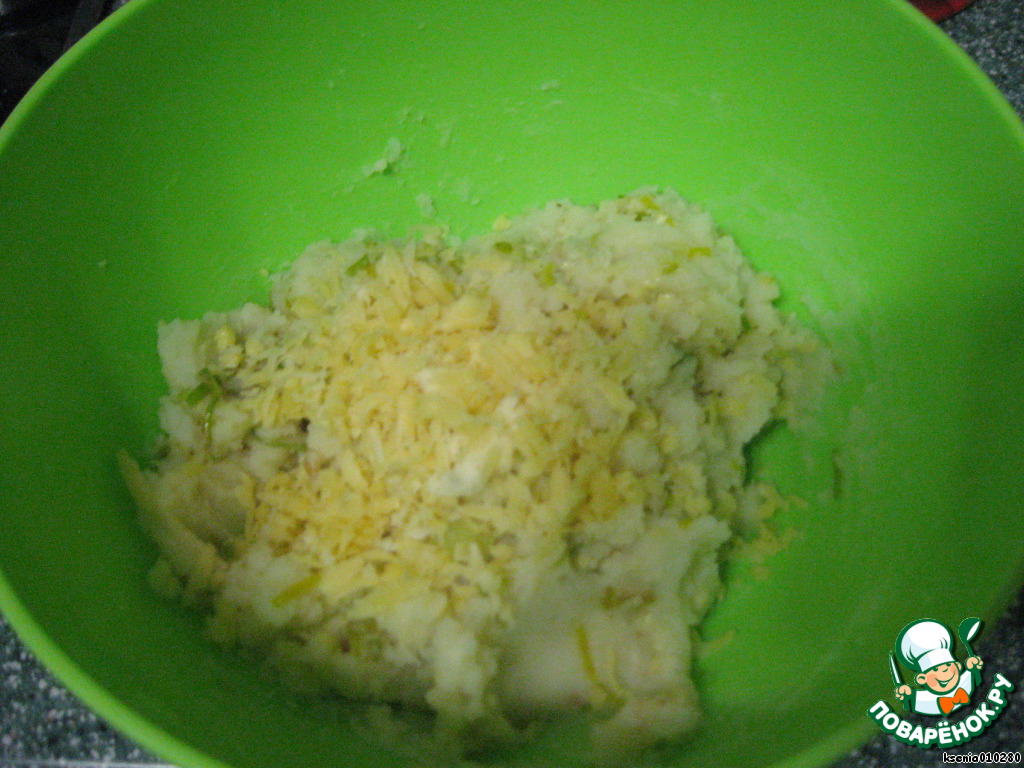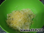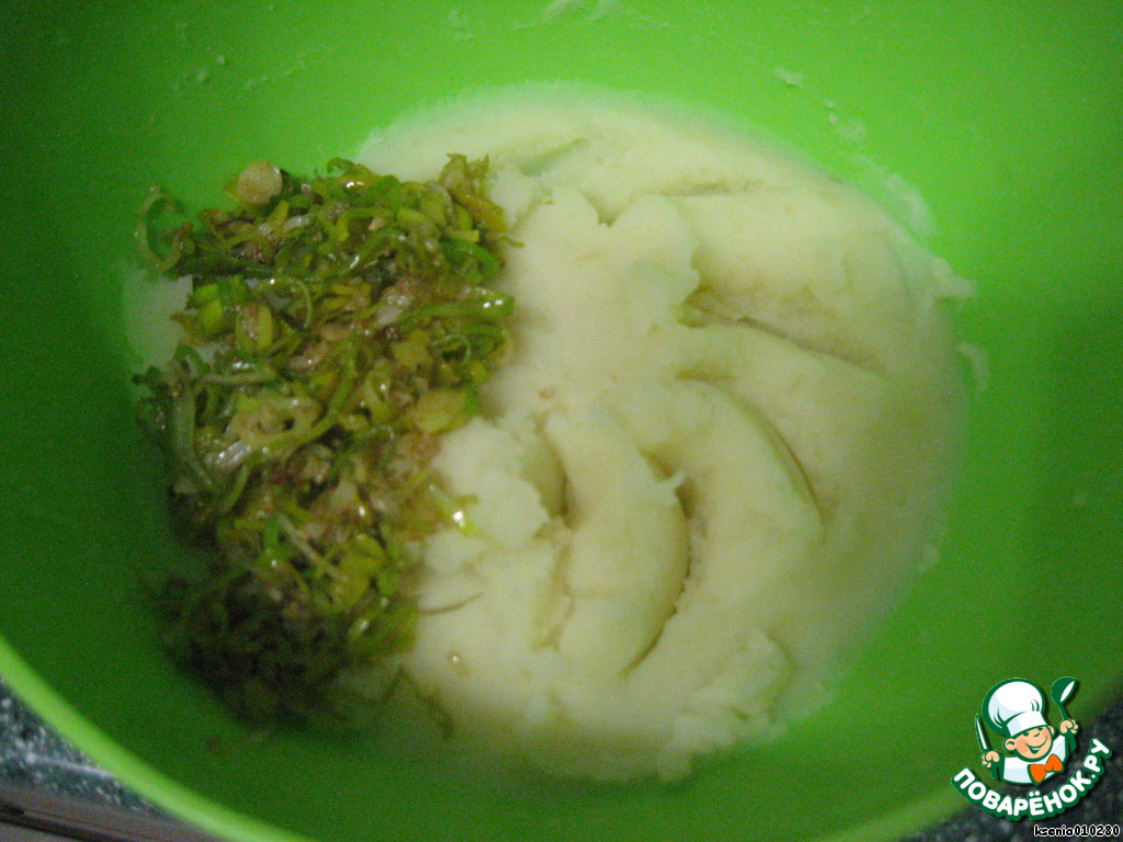 Смешать обжаренные лук и чеснок с картофельным пюре.