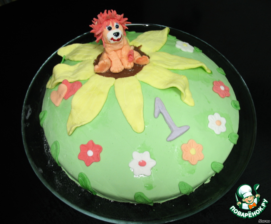 Этот кексик я делала доче на годик, а сверху украшала мастикой. Времени, как всегда, было мало, вот и нашла легкий и быстрый в приготовлении кексик, который у меня дома сьедается еще быстрее, чем готовится :) Украшала все мастикой. Это мой первый опыт украшения всего торта мастикой. И вот еще нашла немного похожий рецептик: https://www.povarenok.ru/recipes/show/33735/