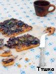 Тесто раскатать в прямоугольник или распределить его по форме. Раскатывать удобней всего уже на противне, так как тесто очень легко рвется.