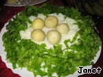 По краю выложить салат, по середине положить целые желтки!!!