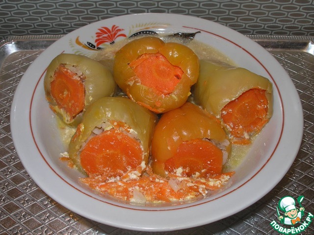 - Морковь (средняя, тёртая, в соус - 2 шт., закрыть фарш в перце - 1 шт.) — 3 шт