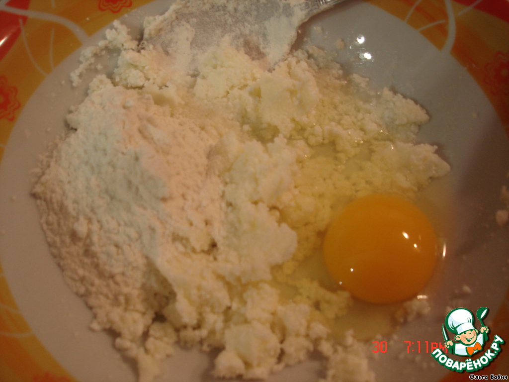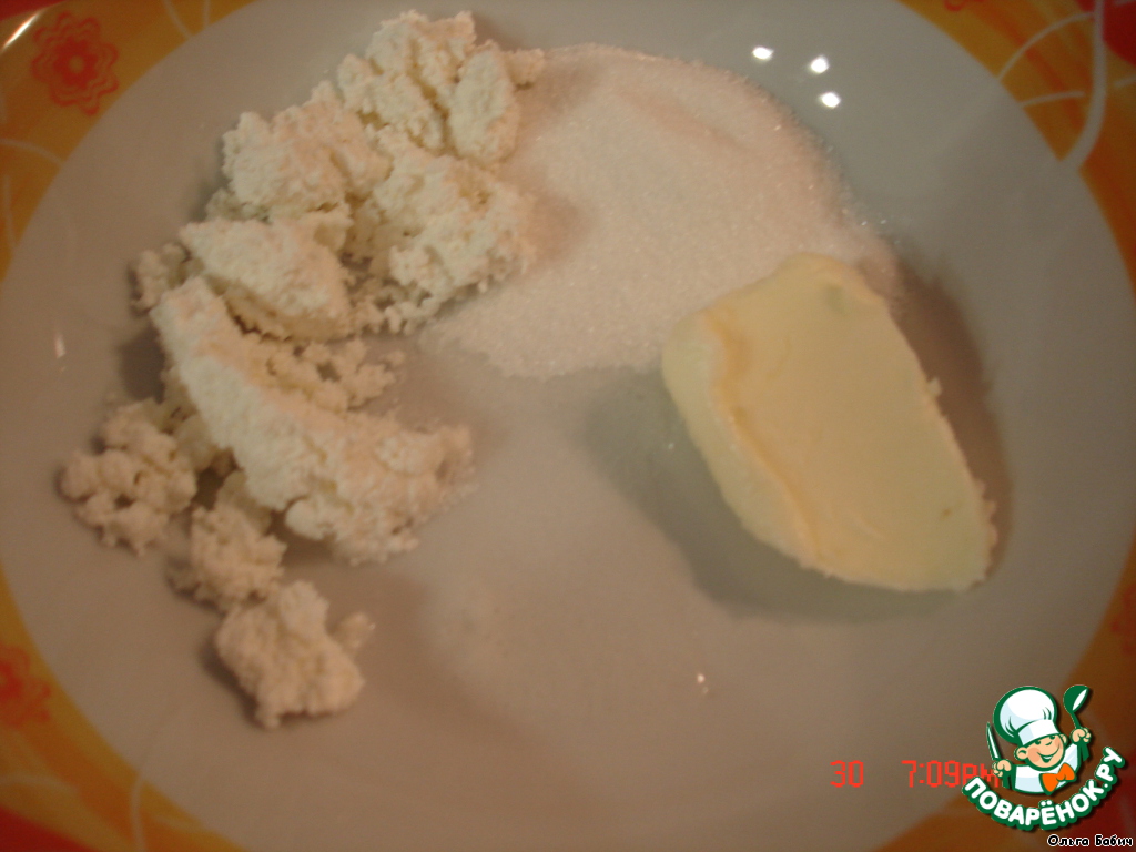 творог, сахар и масло комнатной температуры хорошо перемешать -