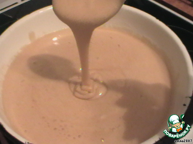 Сбить яйца с сахаром. Добавить мед, сахар и соду (не гасить) и на паровую баню.