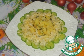 Простой и легкий салат в приготовлении. Не смотрела, есть ли в рецептах на сайте, если есть, то лишний раз напомнить о таком салатике не будет лишним. Рецепт позаимствовала у компании, которая привозила нам в офис обеды.