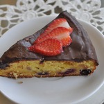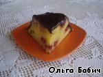 Пока печется пирог, сливки довести до кипения, залить поломанный шоколад, хорошо перемешать до полного растворения шоколада.