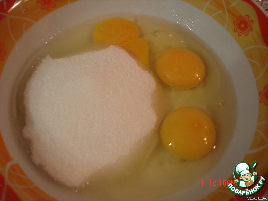 Яйца взбить венчиком с сахаром,