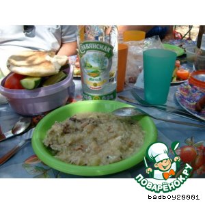 Добавляю в казан на глаз грамм 50 водочки для аппетиту