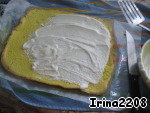 Осторожно скрутить (я, за неимением большого блюда, разрезала рулет пополам),