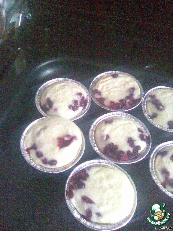 Приготовить формочки. Смазать их маслом, положить в них немного ягод, присыпать сахаром. Количество ягод и сахара на ваш вкус.