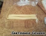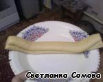 свернуть пласт с одной стороны по всей длине в рулет до середины, то же самое проделать и с другой стороной.