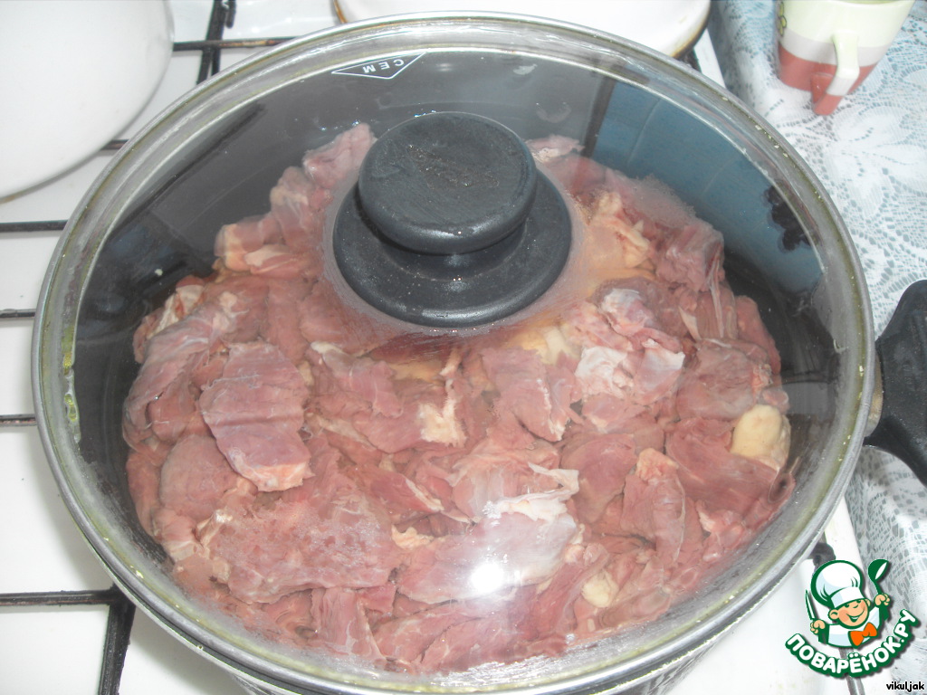 Мясо нарезать мелкими кусочками